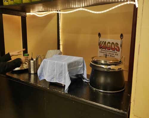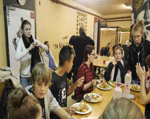 Nous avons été touchés par l’accueil que nous avons reçu à la cuisine populaire. Nous avons partagé un bon repas dans ce lieu qui ne paye pas de mine, mais qui est d’une grande utilité pour les gens de notre ville qui sont dans le besoin. Nous trouvons important de soutenir ce lieu convivial qui permet à des gens d’âges et d’horizons très différents de manger pour pas cher, passer un moment au chaud et surtout rencontrer d’autres gens.