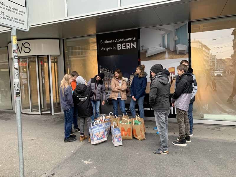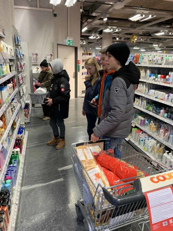 Nous avons posé notre regard sur les cartons du cœur en allant faire les commissions pour remplir au maximum nos sacs. Deux groupes avec chacun en poche Fr. 100.–.